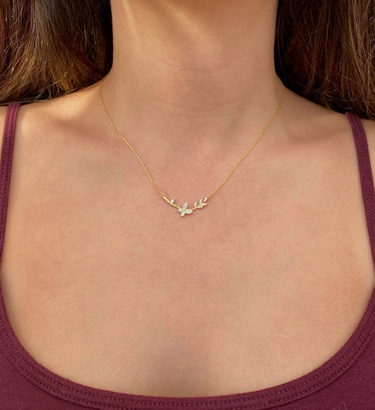 Collar de Mariposa Pave con Hojitas